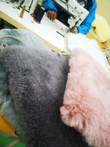 さて、高木ミンク本社では大人気のムートンクッションを400枚増産中。